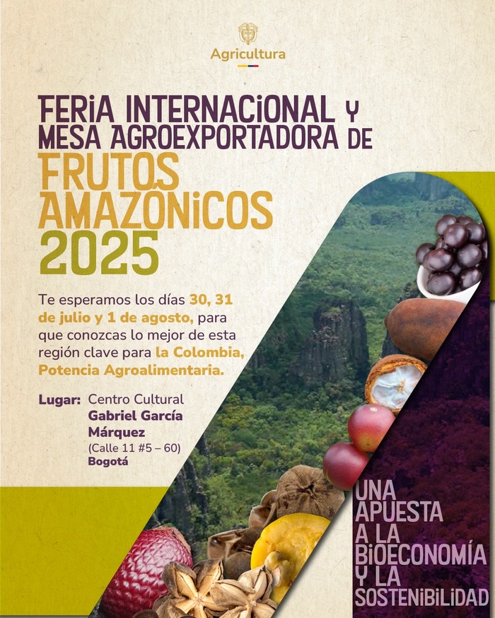 Con la participación de 90 productores de Guainía, Putumayo, Caquetá, Vaupés, Amazonas y Guaviare se realizará en Bogotá, entre el 30 de julio y el 1 de agosto, la Feria Internacional y Mesa Agroexportadora de Frutos Amazónicos 2025.