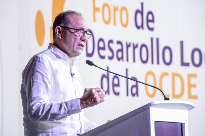 El ministro del Trabajo, Antonio Sanguino, durante su intervención en la apertura del Foro de Desarrollo Local de la OCDE 2025, que irá hasta el 10 de julio en Barranquilla, señaló que “en este espacio de diálogo compartimos los alcances y transformaciones de la reforma laboral, una Ley ambiciosa, la 2466 de 2025 que representa un avance histórico en la dignificación del trabajo y la equidad”.