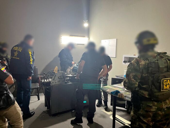 Además, en el sitio donde finalmente se materializó la captura se incautaron más de 540.000 dólares falsos, en denominación de billetes de 50 dólares. En moneda colombiana, esto representaría unos 2161 millones de pesos. También se encontró una máquina de imprenta de billetes.