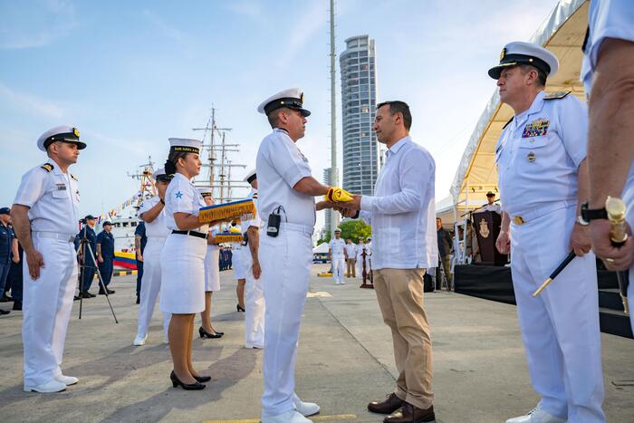 “Desde Cartagena, puerto de historia y soberanía, recibimos con orgullo estos tres buques que fortalecen el poder marítimo de nuestra Armada. Esta entrega no solo mejora nuestras capacidades operativas, también refleja los lazos de confianza y cooperación con Estados Unidos en la lucha contra amenazas comunes como el narcotráfico, la trata de personas y el crimen transnacional”, afirmó el Ministro de Defensa Nacional, Pedro Sánchez Suárez.