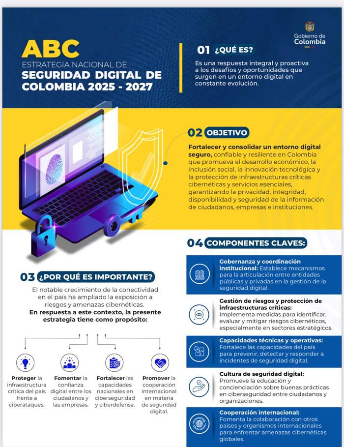 Entre sus objetivos está hacer frente al crítico aumento de ciberamenazas que sufre el país, ya que, durante 2024, Colombia enfrentó cerca de 36.000 millones de intentos de afectación, siendo el segundo país más atacado de Latinoamérica, con el 17% de los intentos. Estos ataques afectaron especialmente a los sectores financiero, salud y energético.