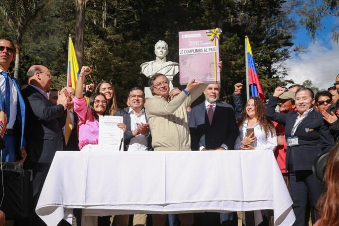 Igualmente, desde la Casa Museo Quinta de Bolívar, en Bogotá, donde sancionó la iniciativa, el mandatario resaltó que “hoy la reforma es una realidad. Hay 11.000 estudiantes de medicina que podrán tener un salario mínimo en su internado y más de 310.000 aprendices del SENA contarán con contrato y todas las prestaciones laborales”.