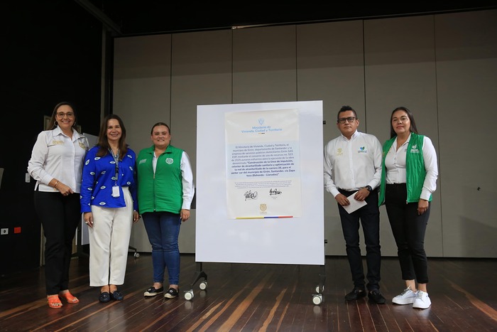 Por último, según el Ministerio, se firmó con la alcaldesa (E) de Girón, Claudia Jaimes, el convenio construcción de la línea de impulsión, colector de alcantarillado sanitario y optimización de la red de alcantarillado de la carrera 26, para el sector sur de este municipio de Santander.